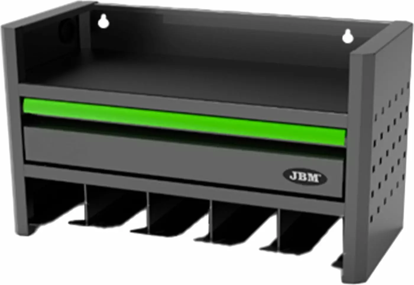 Porakoneteline vetolaatikolla viidelle laitteelle. Läpivienti laturin piuhalle. Mitat: 540x250x340mm.