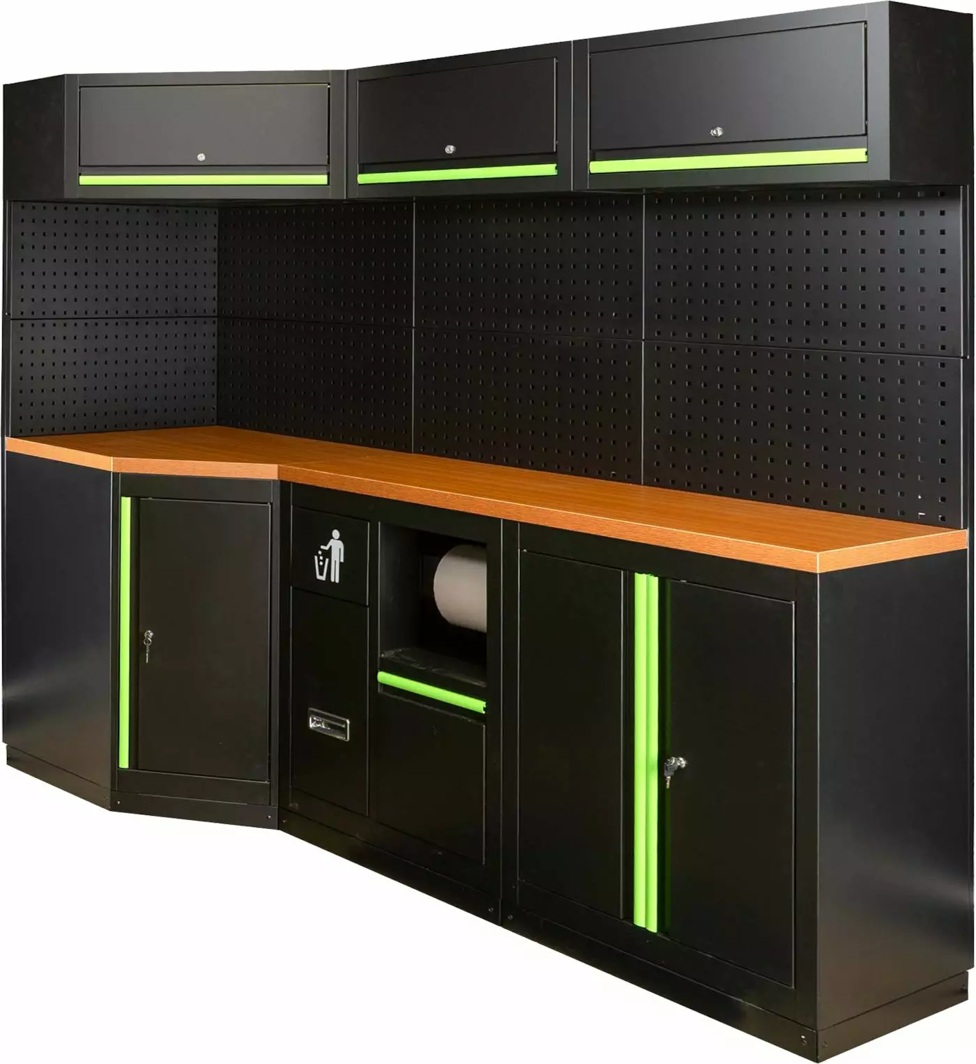 Työasemakokoonpano kulmakaapeilla. Mitat (KxLxS): 1950x2160x500/800mm.