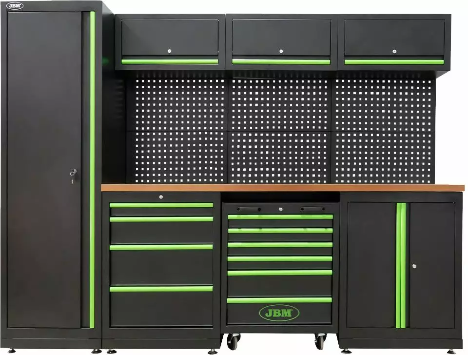 Työasemakokoonpano työkaluvaunulla ja työkaluilla. Toimitetaan kaappi ja laatikostot valmiiksi kasattuna. Sisältää työkalusarjan 53708, 172 osaa. Kokonaismitat: Korkeus 1950mm leveys 2640mm... Lue lisää