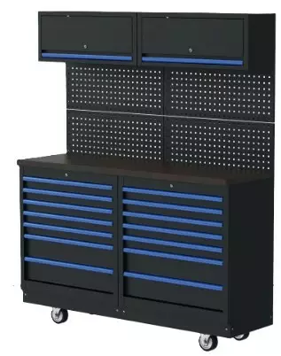 Kalustekokonaisuus on helppo liikutella haluamaansa paikkaan kookkaiden ja kääntyvien 125 mm pyörien ansiosta. Etummaiset pyörät varustettu jarruilla. Mitat: L 1722, S 546, K 2070 mm... Lue lisää