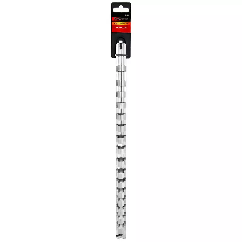 Kisko 1/2" Hylsyille Pituus 430 mm Yhteensä 16 liikuteltavaa nastaa 1/2" hylsyille. Hylsypidikkeiden avulla hylsyt pysyvät visusti paikallaan ja järjestyksessä.