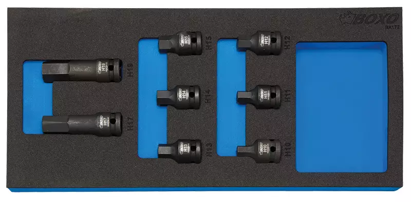 Kuusiokolo voimahylsysarja Kuusiokolo konehylsysarja 10-19mm 1/2" vääntiöllä 8 osaa