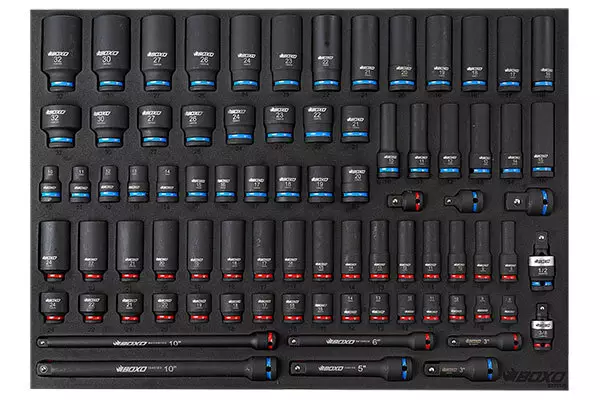 Kokonaisen vetolaatikon esim. vaunusta 285-7071A täyttävä konehylsysarja vaahtomuovialustalla. Sisältää: - 3/8" Konehylsyt 8, 9, 10, 11, 12, 13, 14, 15, 16, 17, 18, 19, 20, 21, 22, 24 mm - 3/8"... Lue lisää