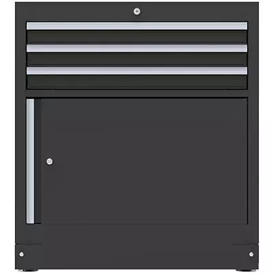 Lukittava saranovellinen kaappi ja kolme kuulalaakeroitua vetolaatikkoa keskuslukituksella Boxon OSM-kalustekokonaisuuksiin. Jokaiseen vetolaatikkoon mahtuu neljä Boxon työkalumoduulia.... Lue lisää