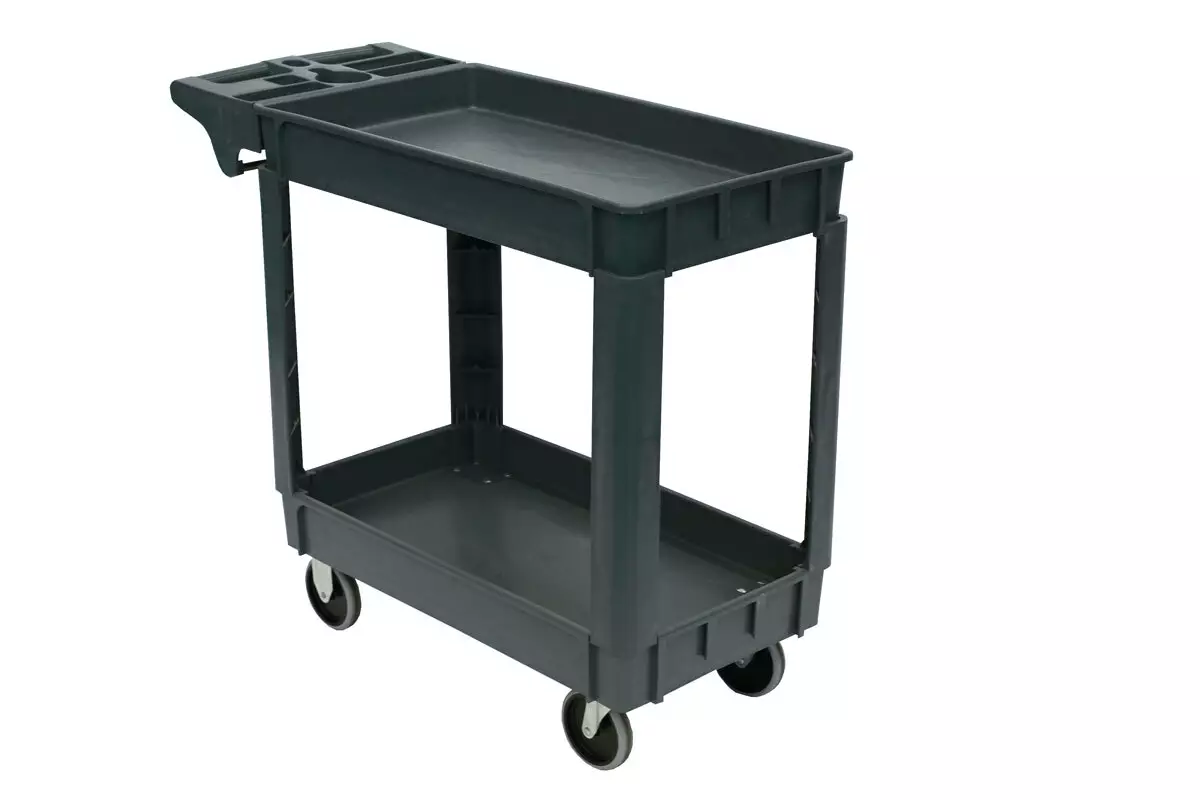 2-tasoinen huoltovaunu, 250 kg Valmistettu sähköä johtamattomasta komposiittimuovista Kantavuus 250 kg Mitat: P 470 x L 220 x K 820