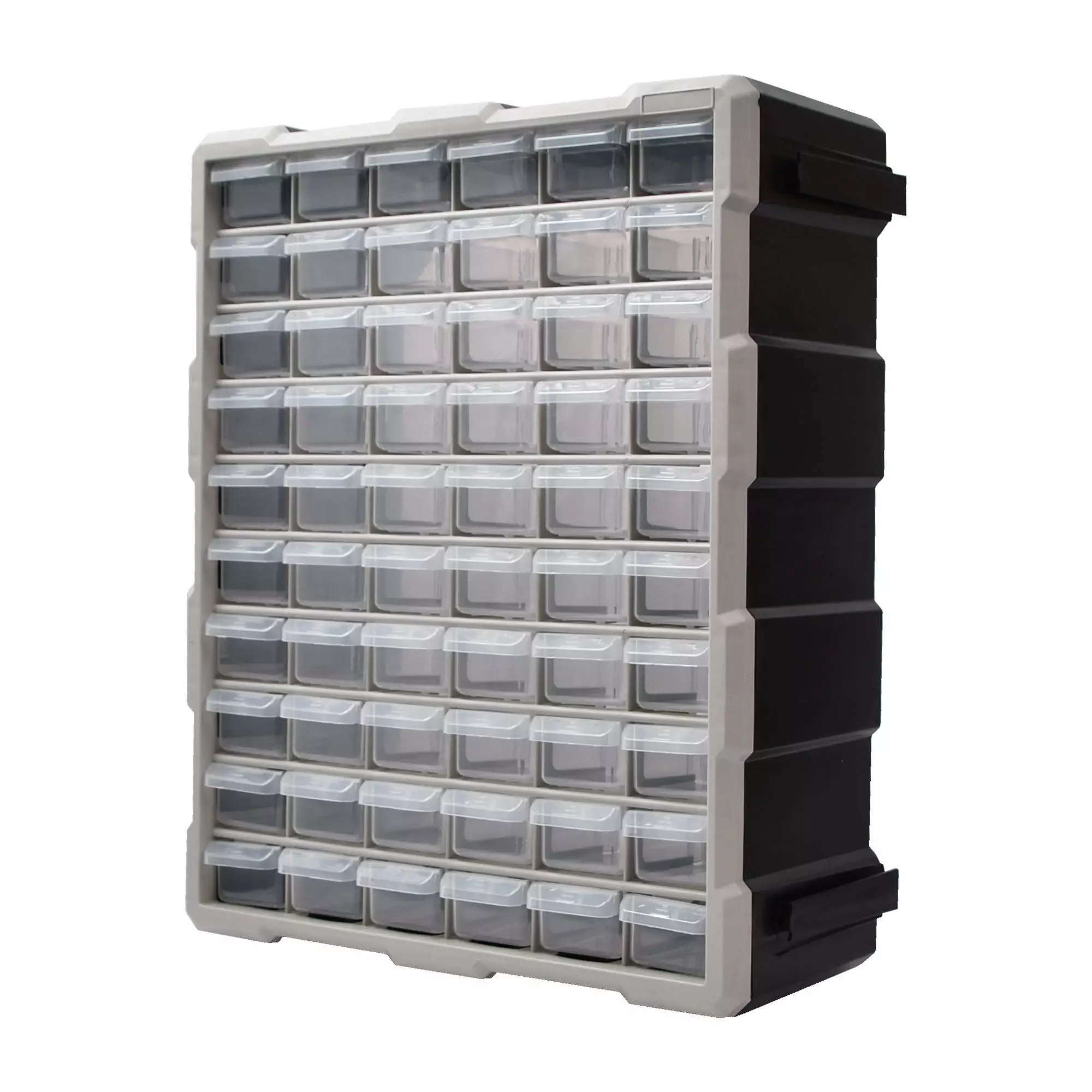 Lokerikossa on 60 erillistä 11 x 5 cm kirkasta laatikkoa.