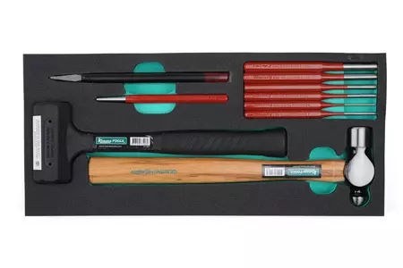 K 1970 Kuulapäävasara, 340 g K 5201 Rekyylitön vasara, 40 mm, 520 g K 10521 Lyömätaltta, 200 mm K 10518 Pistepuikko, 150 mm K 10512 Tuurna, 3 mm×150 mm K 10513 Tuurna, 4 mm×150 mm K 10514... Lue lisää