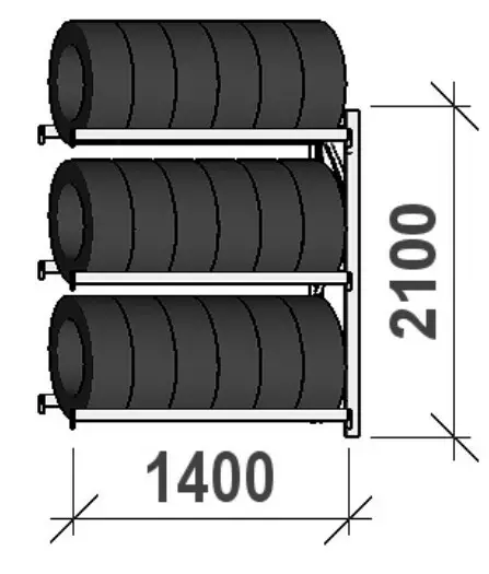 - 2100 x 1400 x 500 mm, 3-tasoa