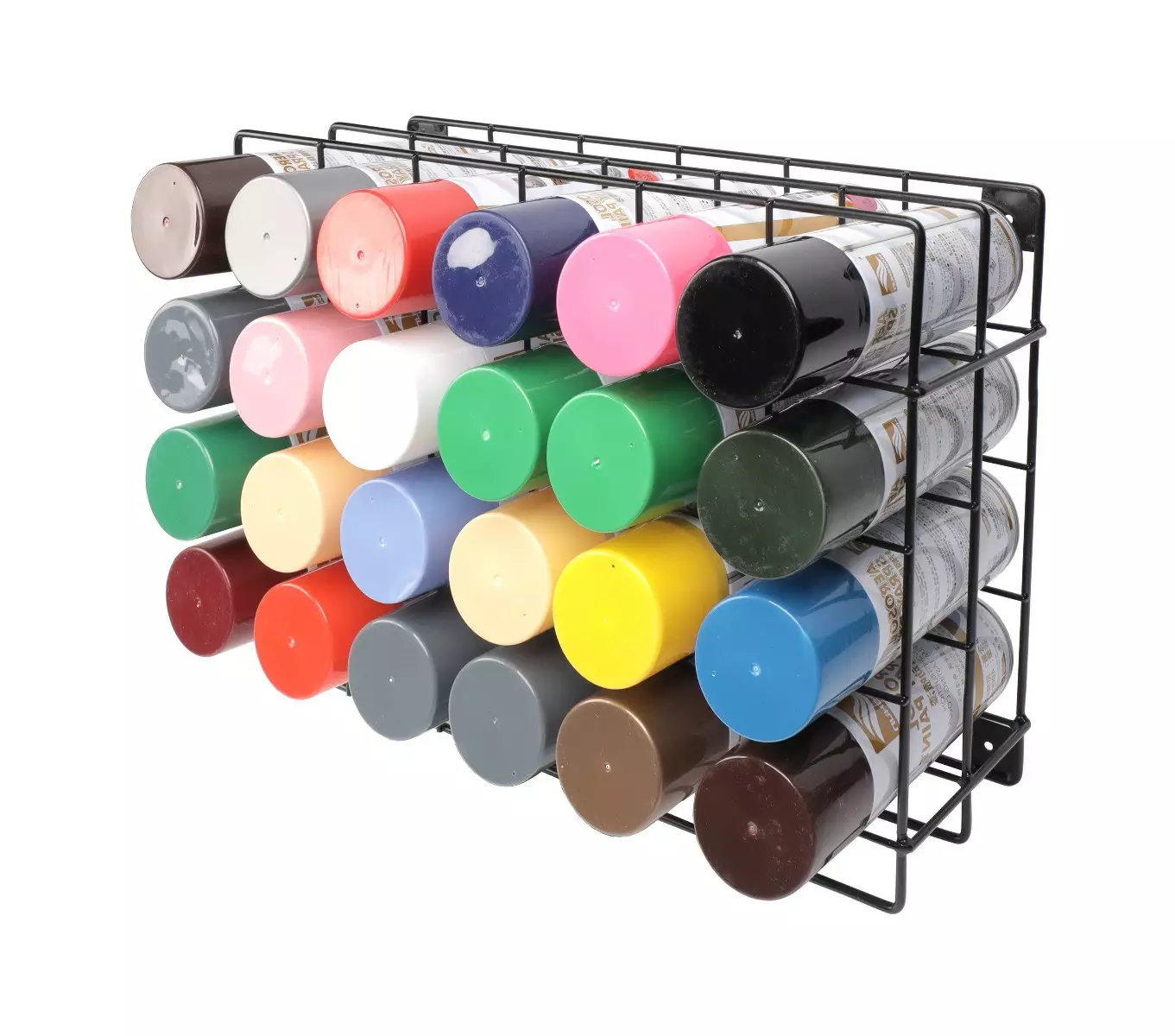 Vahvasta pulverimaalatusta teräksestä valmistettu käytännöllinen teline spraymaalipulloille, ponnekaasupulloille ja muille pulloille. Teline pitää pullot järjestyksessä ja helposti saatavilla, mikä tehostaa työskentelyä ja pitää työtilan siistinä. Pullot sijoittuvat hieman viistossa, jotta ne pysyvät tukevasti paikoillaan.