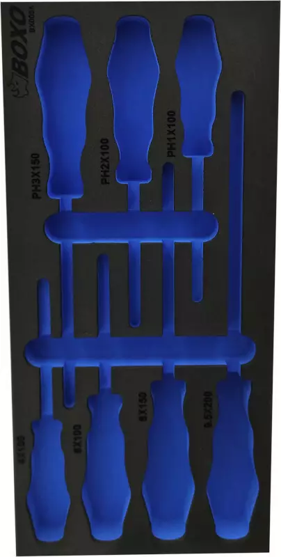 Helppo käyttää työkaluvaunussa, jossa ei valmiina ole lokeroita työkaluille. Valmistettu erityisesti BOXO työkaluille, mutta muidenkin valmistajien vastaavat työkalut sopivat pääsääntöisesti.