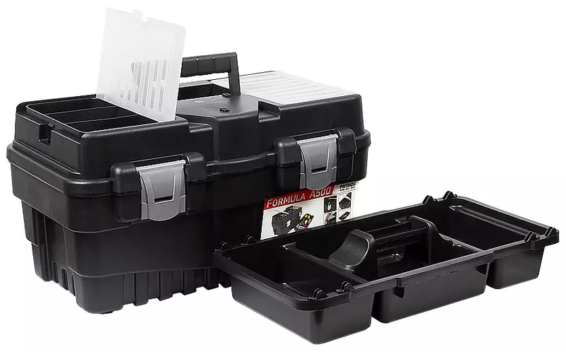 -mitat L462 x S256 x K242 mm -materiaali kestävää muovia -kannessa yhteensä 6 lokeroa 10,5 x 5,5 cm, läpinäkyvällä kannella -pakin voi lukita riippulukolla (riippulukko ei sisälly... Lue lisää