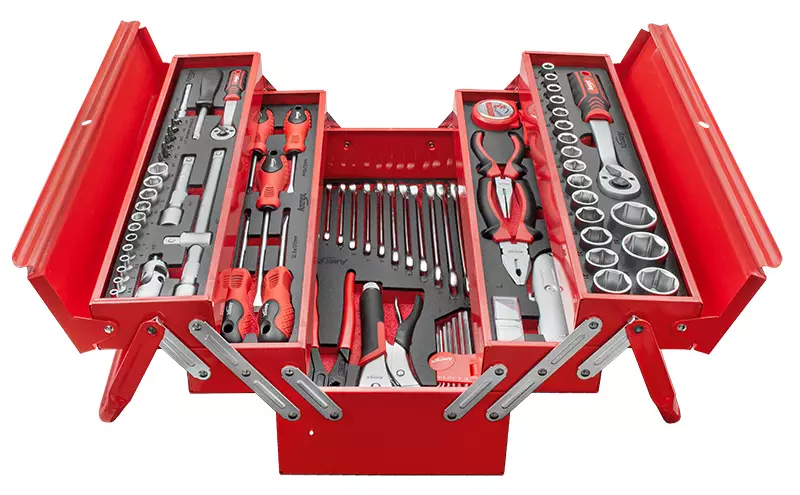 -vankkarakenteinen, metallinen työkalupakki teollisuus- ja kotitalouskäyttöön