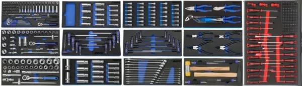Työkalusarja Boxo Työkaluvaunuihin 466-osaa Huom. kokonaisuus ei mahdu vaunuun 285-22551 Sarja sisältää: 1/2" Hylsysarja 8-32 mm 1/4" Hylsysarja 4-14 mm Ruuvitalttasarja ura ja PH-ristipäät... Lue lisää