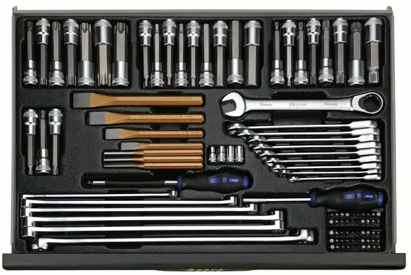 Työkalusarja täyttää kokonaisen vetolaatikon esim. 285-7071-vaunusta