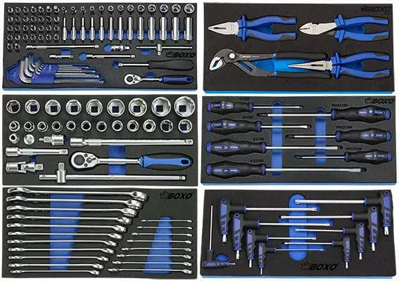 143-Osainen työkalusarja Boxon työkaluvaunuihin sekä muihin kalusteisiin.