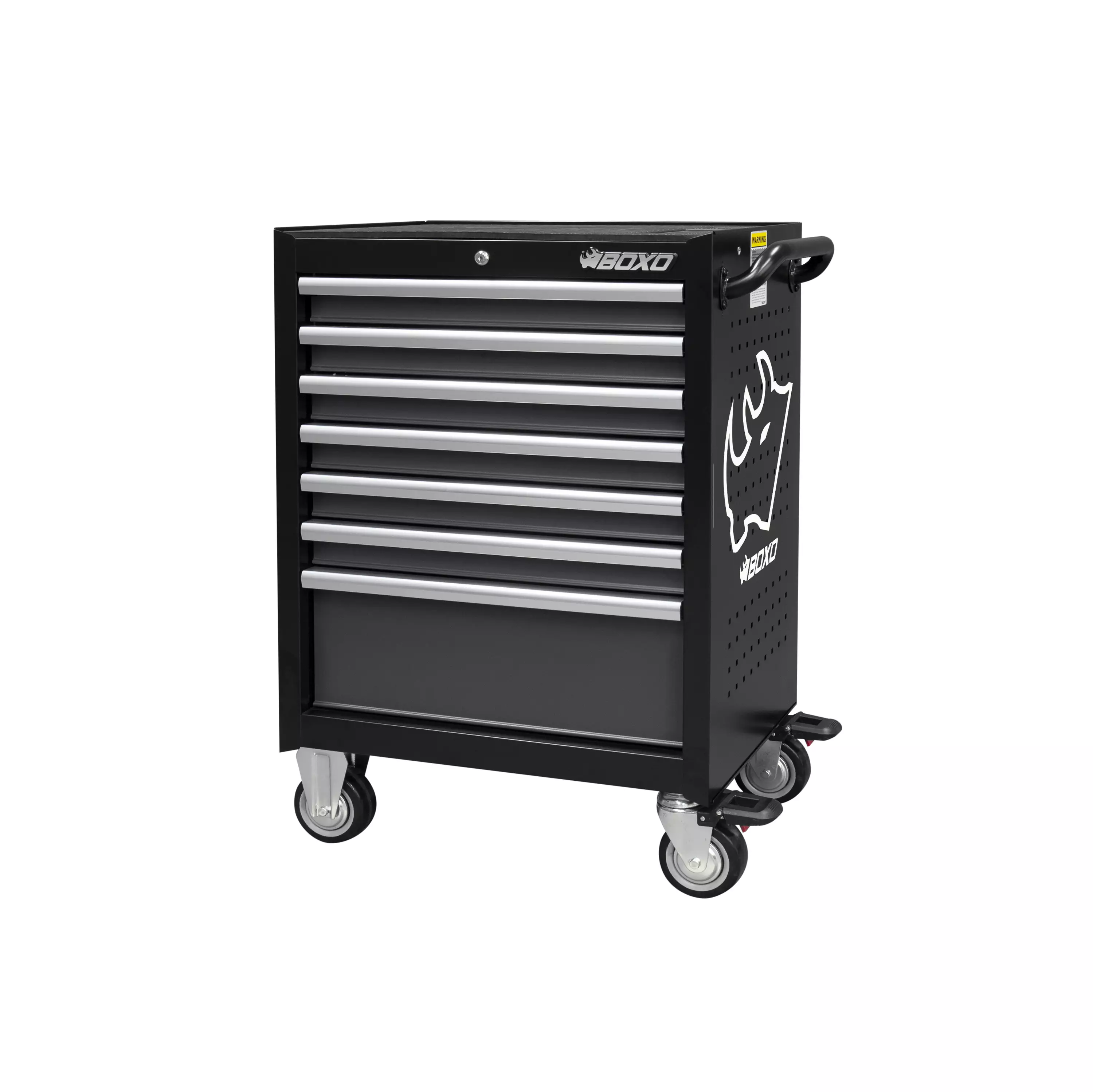 Tukevarakenteinen työkaluvaunu hopeisilla anodisoiduilla alumiinivärikahvoilla. Seitsemän kuulalaakeroitua vetolaatikkoa, joista vain yksi aukeaa kerrallaan. Vaunun päällä luistamaton kumimatto. Vaunun kyljissä reikälevyseinät 9 x 38 mm reikäjaolla. Vaunun kokonaismitat L 680, S 480, K1020 mm.