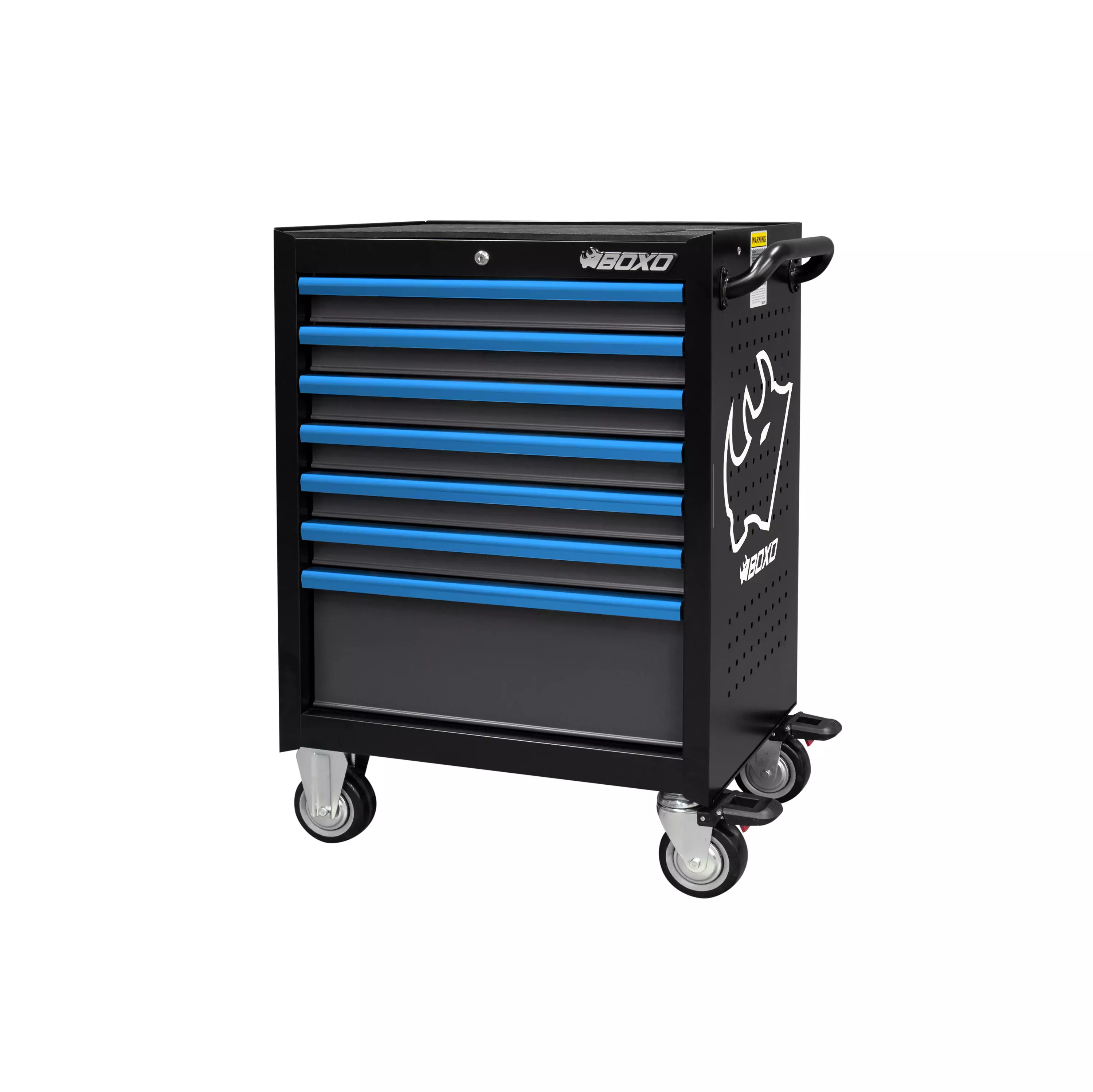 Tukevarakenteinen työkaluvaunu sinisillä anodisoiduilla alumiinivärikahvoilla. Seitsemän kuulalaakeroitua vetolaatikkoa, joista vain yksi aukeaa kerrallaan. Vaunun päällä luistamaton kumimatto. Vaunun kyljissä reikälevyseinät 9 x 38 mm reikäjaolla. Vaunun kokonaismitat L 680, S 480, K1020 mm.