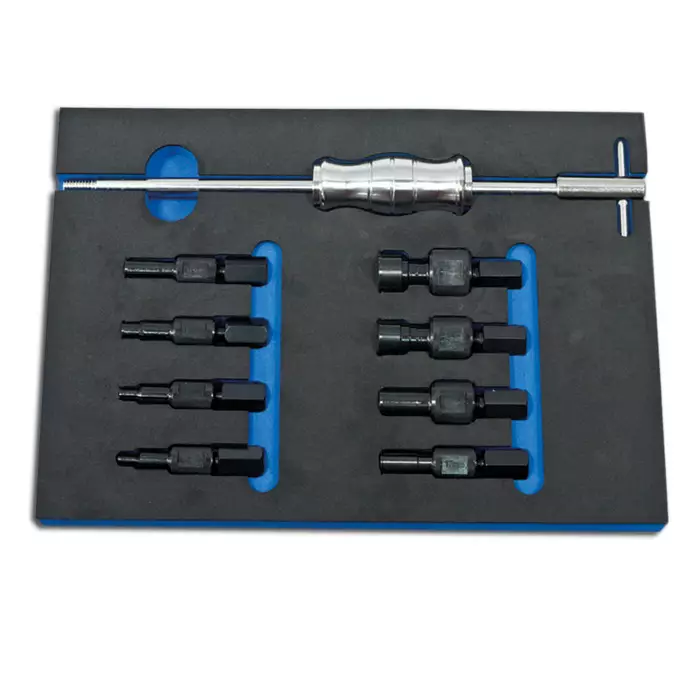 Kahdeksan ulosvetotappia 8-32mm ja liukuvasara. Boxo-työkaluvaunuihin sopiva moduli, toimitukseen sisältyy myös muovinen kantolaukku.