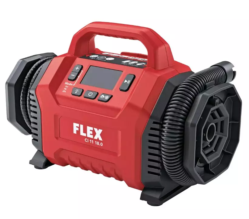 - Kaksitoiminen virransyöttö: toimii FLEX-akuilla tai 12 V ajoneuvojännitteellä (tupakansytytinliitäntä), mikä takaa käytettävyyden myös ilman ladattua akkua.