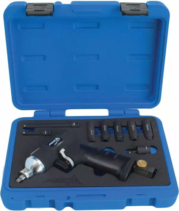Mutterinväännin hehkutulppien irrotukseen. Mutterinväännin tuottaa n. 50 iskua minuutissa joka mahdollistaa kiinni juuttuneiden hehkutulppien irrotuksen. Vääntiö 1/4". Neljä momentti asetusta 10, 20, 30 ja 40 Nm. Mukana tulee hylsyt: 8, 9, 10, 11, 12mm. Jatkovarret ja niveljatko.