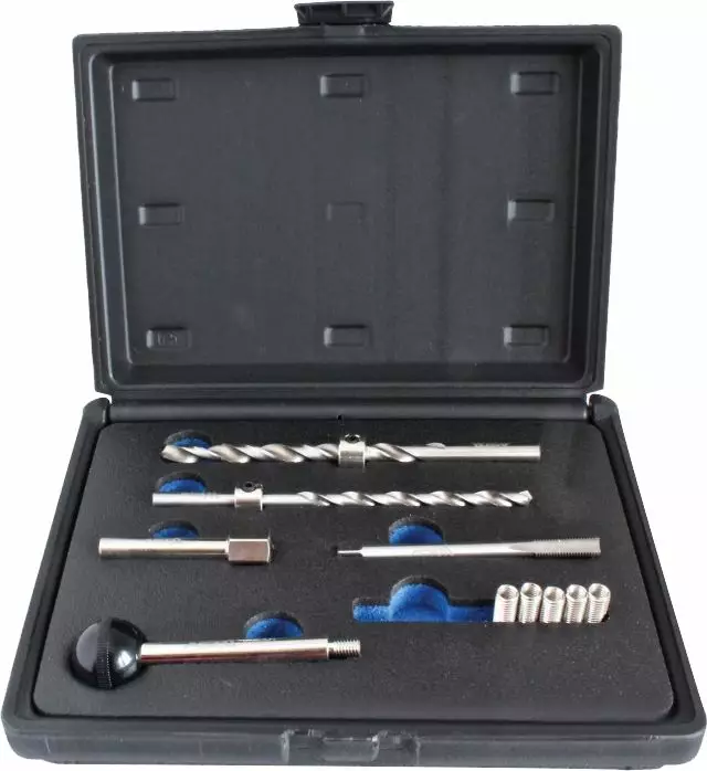 Sarja Mercedes-Benz CDI -suuttimien kiinnityspultit voivat jumiutua paikoilleen ja murtua usein irrotettaessa. Tämä sarja sisältää erikoistyökalut, joita tarvitaan katkenneen pultin poraamiseen ulos ja M6-kierteisten inserttien asentamiseen, jotta voidaan käyttää uusia OEM M6-pultteja.