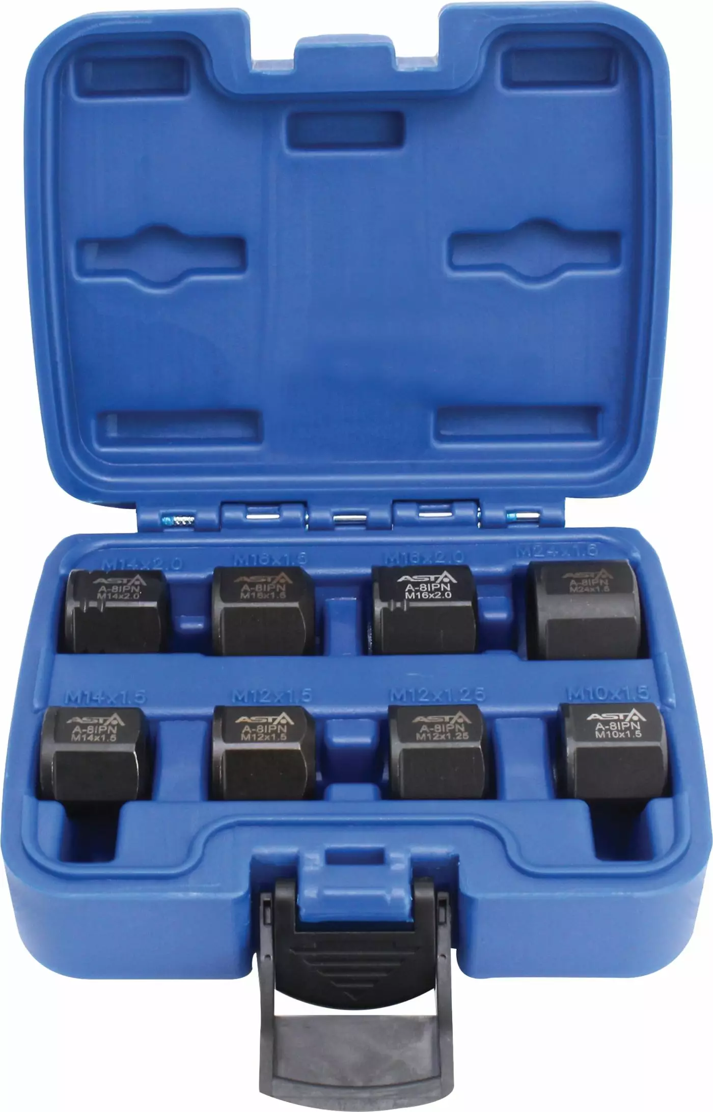 Sarja sisältää koot: M10x1.5 M12x1.25 M12x1.5 M14x1.5 M14x2.0 M16x1.5 M16x2.0 M24x1.5 Materiaali: Cr-Mo Mutterisarja, joka on suunniteltu pallonivelten irrottamiseen paineilmavasaralla nopeasti ja... Lue lisää