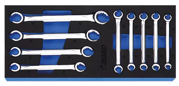 Avolenkkiavainsarja 8-21mm Boxo Avainväli 8x9, 9x11, 10x11, 10x12, 12x13, 13x14, 15x17, 17x19, 19x21mm Vaahtomuovimoduulin koko 185 x 393 mm