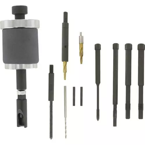 Hehkutulppien ulosvetosarja M8x1 / M10x1 / M10x1,25 hehkutulpille. Sarjassa on tarvittavat työkalut katkenneen hehkun irrottamiseen. Kätevä sarja myös ahtaissa paikoissa, toisin kuin monet vastaavat tuotteet.