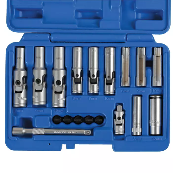 Kattava hylsysarja hehkutulppien irrotukseen ja asennukseen. Sarja sisältää myös oman hylsyn ja suojahatut PSG (Pressure Sensor Glow-plug) hehkutulpille. Kyseiset hehkutulpat ovat erittäin herkkiä mekaanisille vaurioille.