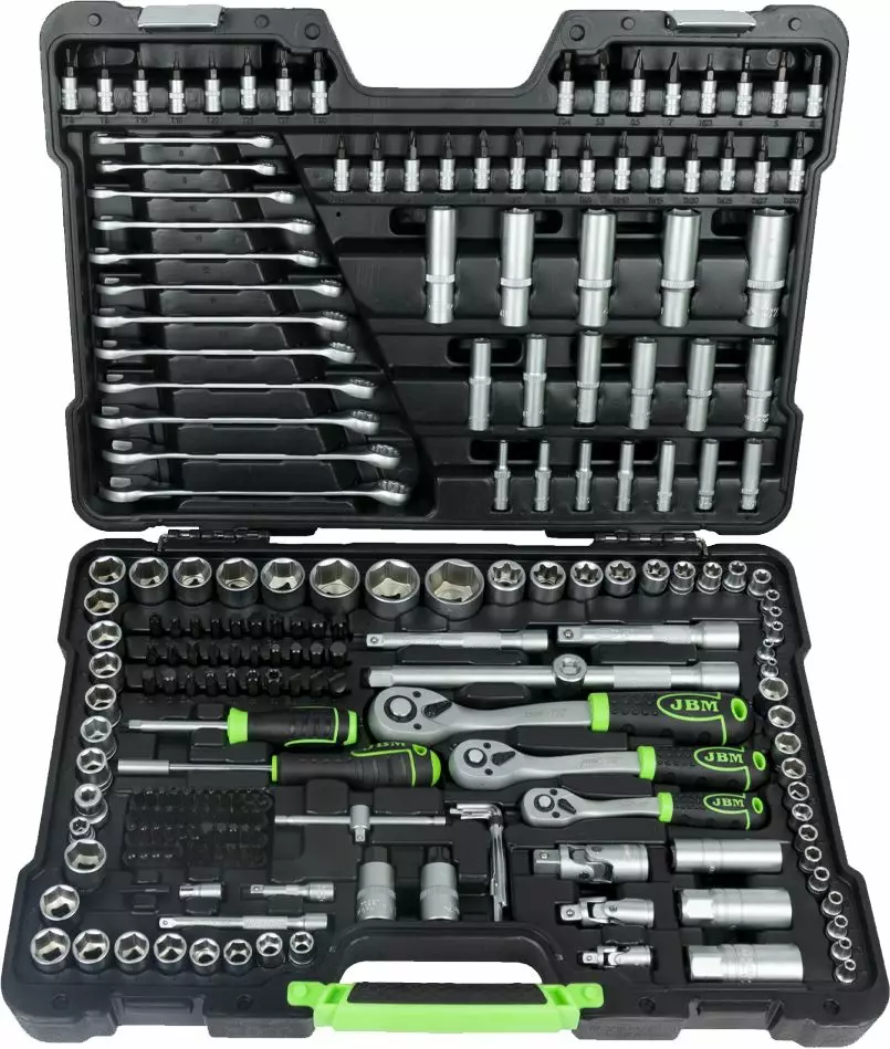 Hylsysarja muovisalkussa 1/4"+3/8"+1/2" räikkä- ja hylsysarja 216-osaa JBM