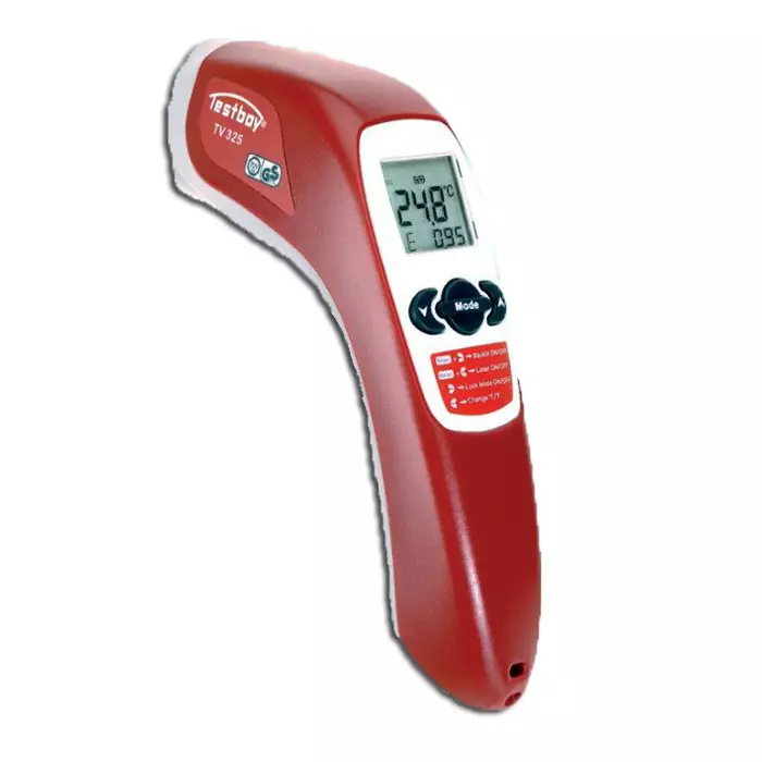 - Testboy TV325 on tarkka infrapunalämpömittari lämpötilan mittaamiseen. Suuri näyttö, hold-toiminto, min/max-näyttö sekä muisti arvoille.