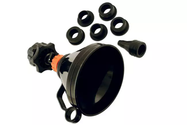 Täyttölaitetta käyttämällä vältytään ilmataskuilta järjestelmässä. Laitteessa sulkuventtiili ja 5 erilaista adapteria (31mm, 35mm, 40mm, 42mm and 45mm). Lisäksi kartioliitäntä Japanilaisiin autoihin.