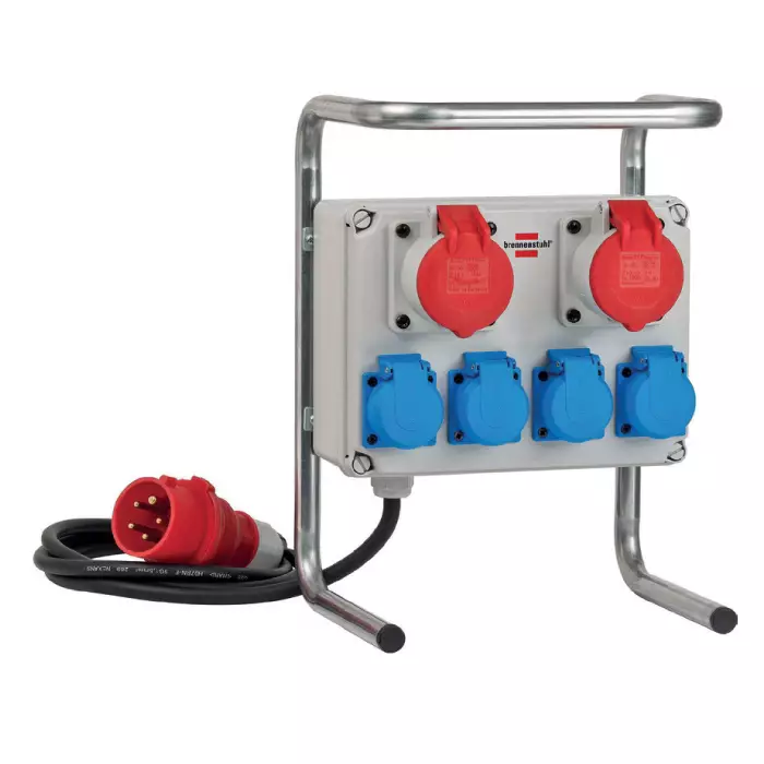 - Sisääntulo CEE 400 V / 16 A - Ulostulot 2 x CEE 400 V / 16 A ja 4 x Suko 230 V / 16 A