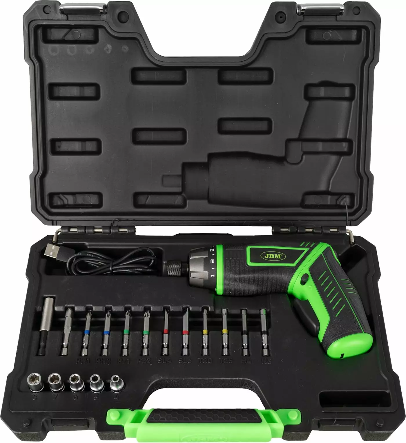 Sarja sisältää: Kaksiasentoinen akkuruuvinväännin Kiinnitys: 1/4" HEX 1/4" ruuvauskärkipidin Ruuvauskärjet: PH1, PH2, PZ1, PZ2, SL4, SL6, T20, T25, H4, H5 1/4"-3/8" hylsypidin Hylsyt: 4, 5, 6... Lue lisää