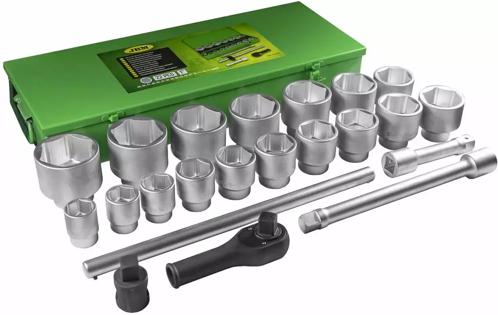 Sisältää 6-kulma hylsyt: 36, 38, 41, 46, 50, 54, 55, 58, 60, 63, 65, 67, 70, 71, 75, 77 ja 80 mm.