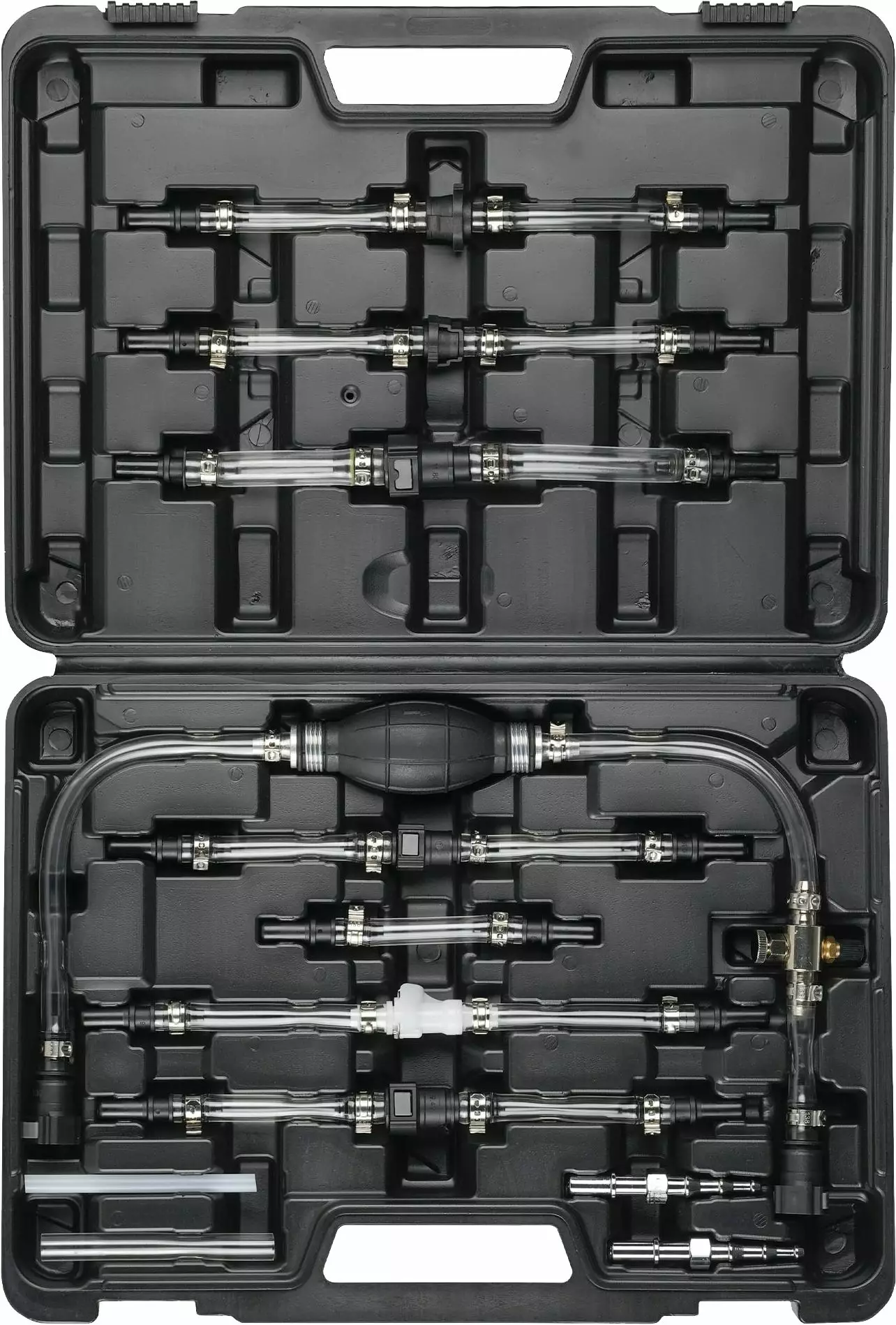 Täydellinen polttoaineen ilmaus/ tyhjennyssarja on suunniteltu toimimaan matalapaineisen polttoainepiirin kanssa ja palauttamaan polttoaine putkeen huollon jälkeen. Läpinäkyvät putket mahdollistavat polttoainejärjestelmässä olevan ilman havaitsemisen. Varustettu uusimmilla uros- ja naaras-pikaliittimillä, jotka löytyvät Fiat-, Ford-, Land Rover-, Mercedes-Benz-, PSA-, Renault-, Rover- ja Vauxhall/Opel-ajoneuvoista.
