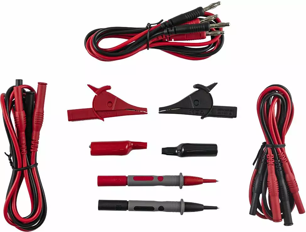 Koejohtosarja yleisimmille yleismittarille. Sisältää: 2 pientä hauenleukaa, 2 isoa hauenleukaa, 2 mittapiikkiä, 2 johtoa, jatkojohdot. Toimitetaan kangaslaukussa.