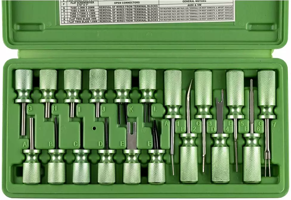 Sähköliitintyökalusarja 19 osaa. Soveltuu yleisesti anturi-, ABS- ja ilmastointiliittimille uudemmissa ajoneuvoissa. Kätevä ja ergonominen muotoilu alumiini kahvassa mahdollistaa turvallisen... Lue lisää
