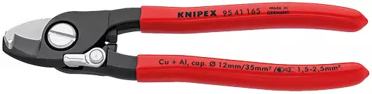 Kevyt yhdenkäden leikkuri, jossa säädettävä ruuvinivel. Yksi- tai monisäikeisten kupari- ja alumiinikaapelien leikkaamiseen.