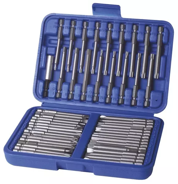 50-Osainen bits-sarja kompaktissa muovilaatikossa Sisältää:-Bits Torq, Spanner, Tri-Wing, Kuusiokolo, Phillips, PzDrive, XZN, Ura sekä Neliökantaan. Ph1,Ph2 Ura 4, 5 ,6mm Pz1, Pz2