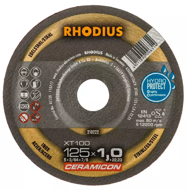 XT100 Ceramicon Erikoisohut katkaisulaikka keraamisella hiomajyvällä. Pitkäikäinen laikka aggressiiviseen katkaisuun. Mitat: 125 x 1,0 x 22,23 mm