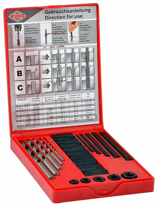 -ulosvetäjäsarja katkenneen ruuvin poistamiseen vaikeista paikoista -sarja sisältää: --5 kpl HSS poranteriä 3.2, 4.8, 6.4, 8, 8.6 mm --5 kpl vääntötappeja GR.1, 2, 3, 4, 5 --5 kpl... Lue lisää
