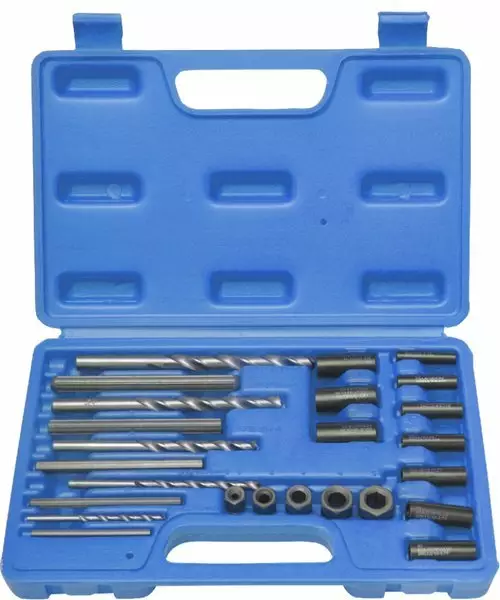 Sarja katkenneen ruuvin/pultin M5-M16 irrottamiseen. Sisältää: 5 x poranterä, 5 x ulosvetotappi ja 10 x ohjausholkki.