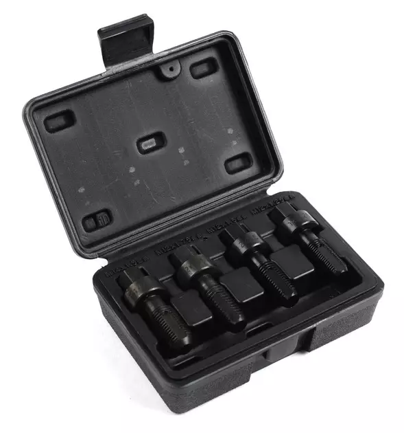 Kierretyökalusarja Pyöränmuttereille 4 osaa Kamasa Sisältö 1 kpl Tappi M14x1.5 1 kpl Tappi M12x1.75 1 kpl Tappi M12x1.5 1 kpl Tappi M12x1.25