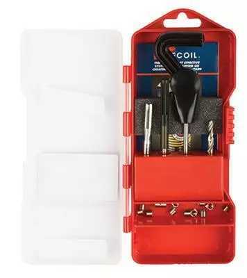Kierteenkorjaussarja sisältää kaiken tarpeellisen kierteen korjaamiseen tai vaikka vahvistamiseen. Käyttöohjeet, asennustyökalu, erittäin laadukas ylikoko kierretappi (HSS) ja mittatarkat kierre-elementit (A2/DIN 1.4301 / AISI 304) sisältyvät kierteenkorjaussarjaan.