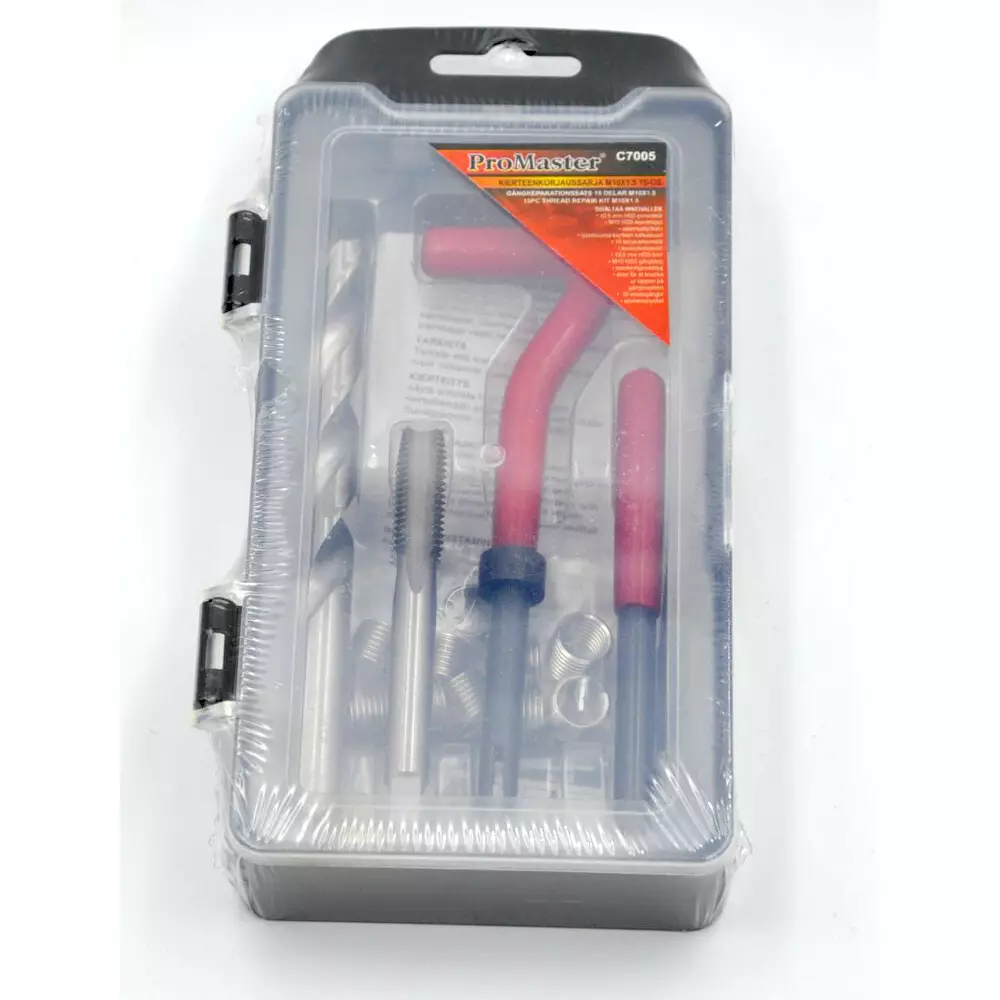ProMaster Kierteenkorjaussarja M10X1.5 kierre M10x1.5 ripustettava säilytysrasia takuu 1 vuosi 15-osainen sarja sisältää 1 kpl 10.5mm HSS-poranterä 1 kpl M10 HSS-kierretappi 1 kpl asennustyökalu... Lue lisää