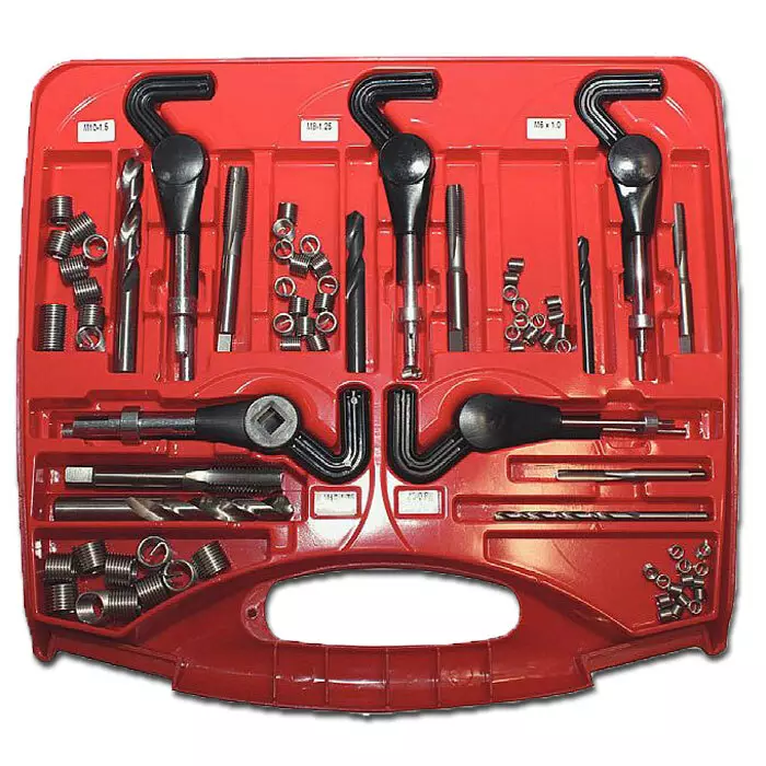 Sarjat sisältävät korkealaatuisen ruostumattomasta teräksestä SAE 304(18-8) (Austeniittinen) valmistettujen kierre-elementtien lisäksi ylikokokierretapin sekä asennustyökalun.