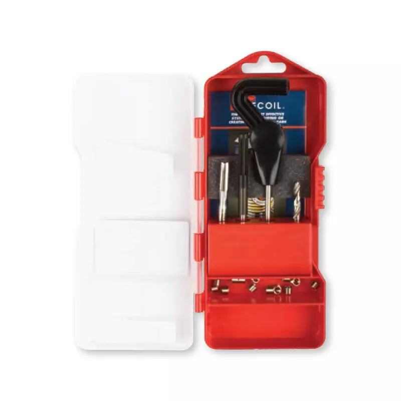 Kierteenkorjaussarja sisältää kaiken tarpeellisen kierteen korjaamiseen tai vaikka vahvistamiseen. Käyttöohjeet, asennustyökalu, erittäin laadukas ylikoko kierretappi (HSS) ja mittatarkat kierre-elementit (A2/DIN 1.4301 / AISI 304) sisältyvät kierteenkorjaussarjaan.