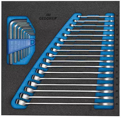 Kiintolenkkiavainsarja 7-22mm Gedore Vaunuun Työkalusarja Gedoren työkaluvaunuihin. Huom! kaksi kertaa CT1-moduulin kokoinen. Sisältää kiintolenkkiavaimet 7-22 mm ja kuusikoloavaimet 2-10 mm... Lue lisää
