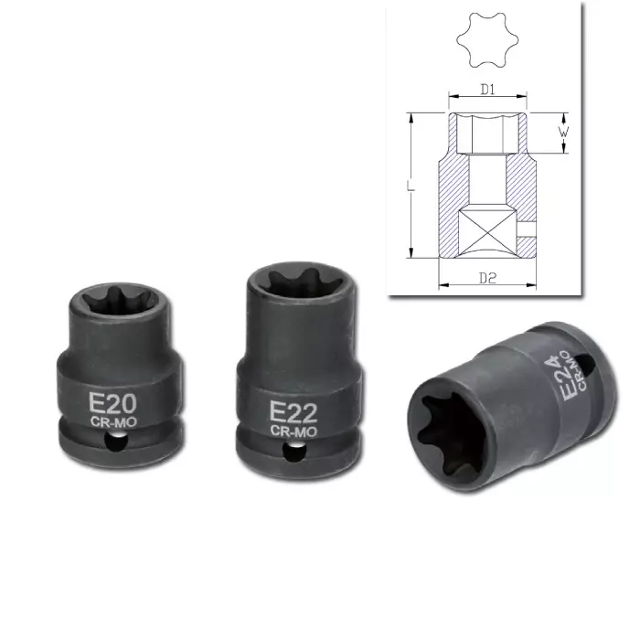 Konehylsy Boxo. Materiaali kromimolybdeeni (Cr-Mo) Avainväli E10 D1 = 14,2 D2 = 25 L = 38 T = 7,5